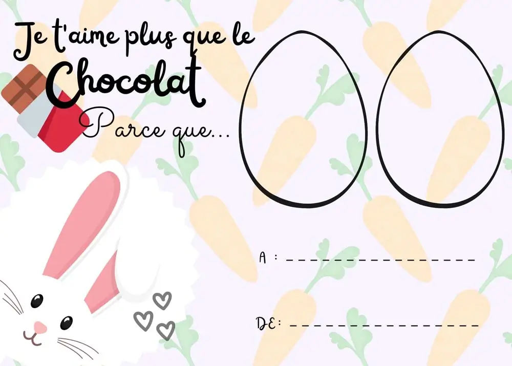 À l’approche de Pâques, offrez à vos enfants une activité ludique et amusante avec nos cartes « Je t’aime plus que le chocolat » !