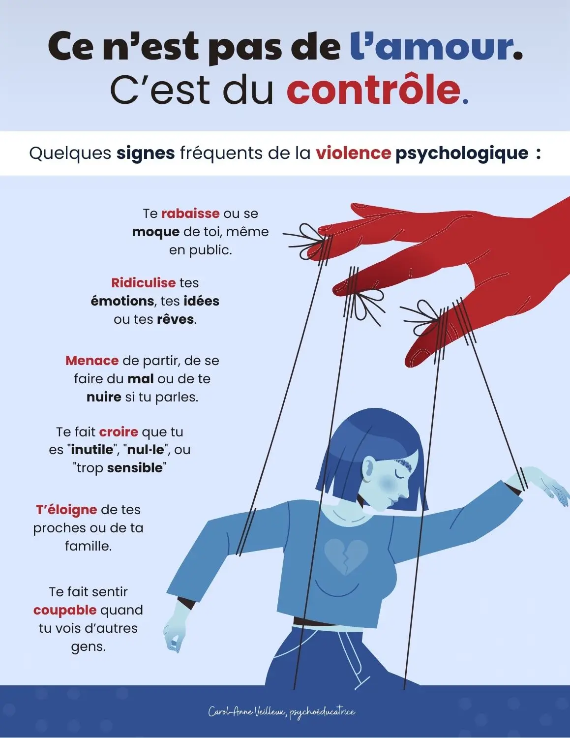 Téléchargez cette affiche dès maintenant pour sensibiliser, éduquer et outiller vos jeunes à reconnaître la violence psychologique et à poser leurs limites. 💬