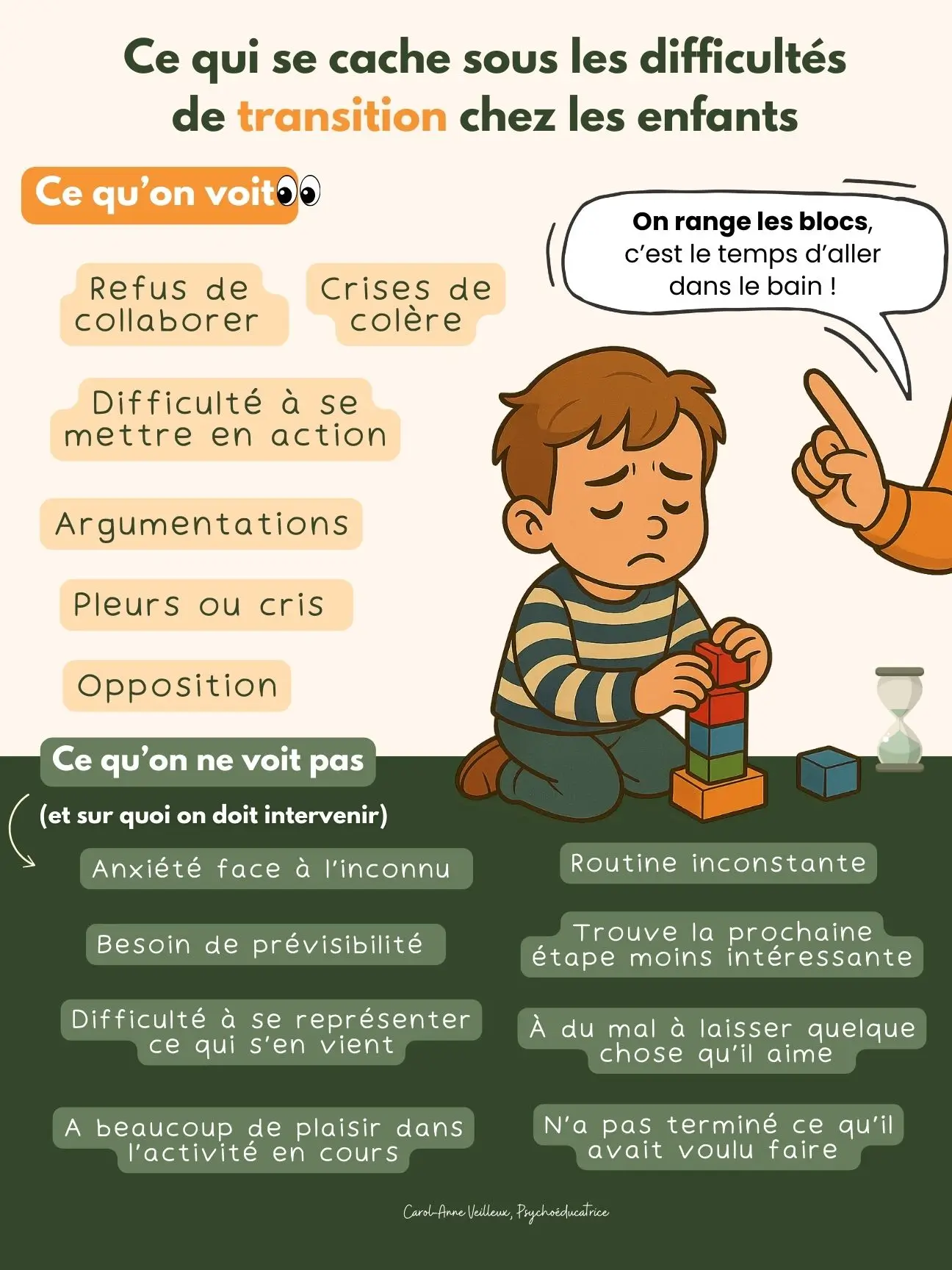 Ce qui se cache sous les difficultés de transition chez les enfants – Affiche éducative