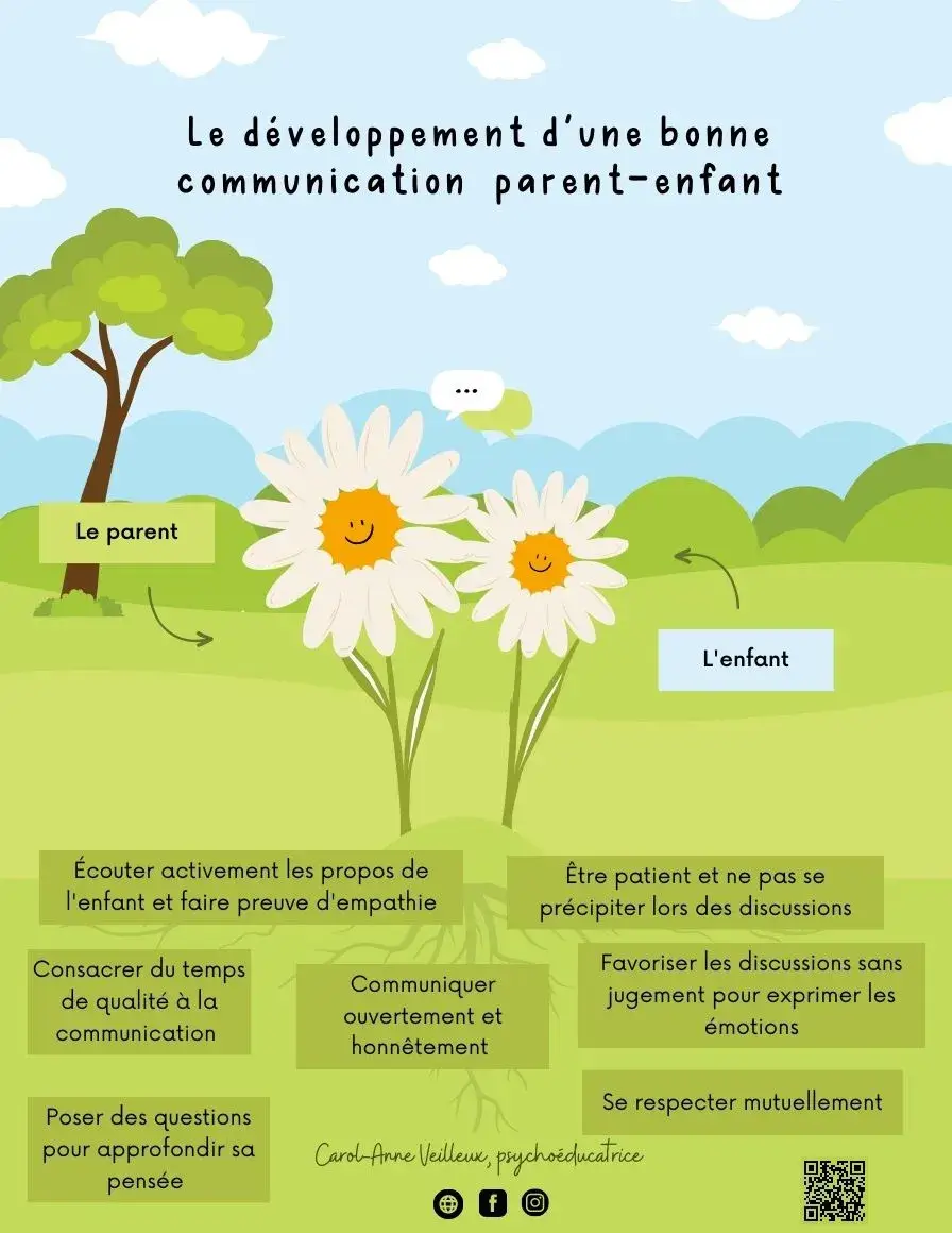 Une racine souligne l’importance de communiquer ouvertement et honnêtement. Une communication transparente permet aux parents et aux enfants de se comprendre mutuellement, d’exprimer leurs émotions, leurs besoins et leurs préoccupations sans jugement, favorisant ainsi une relation de confiance et de compréhension.