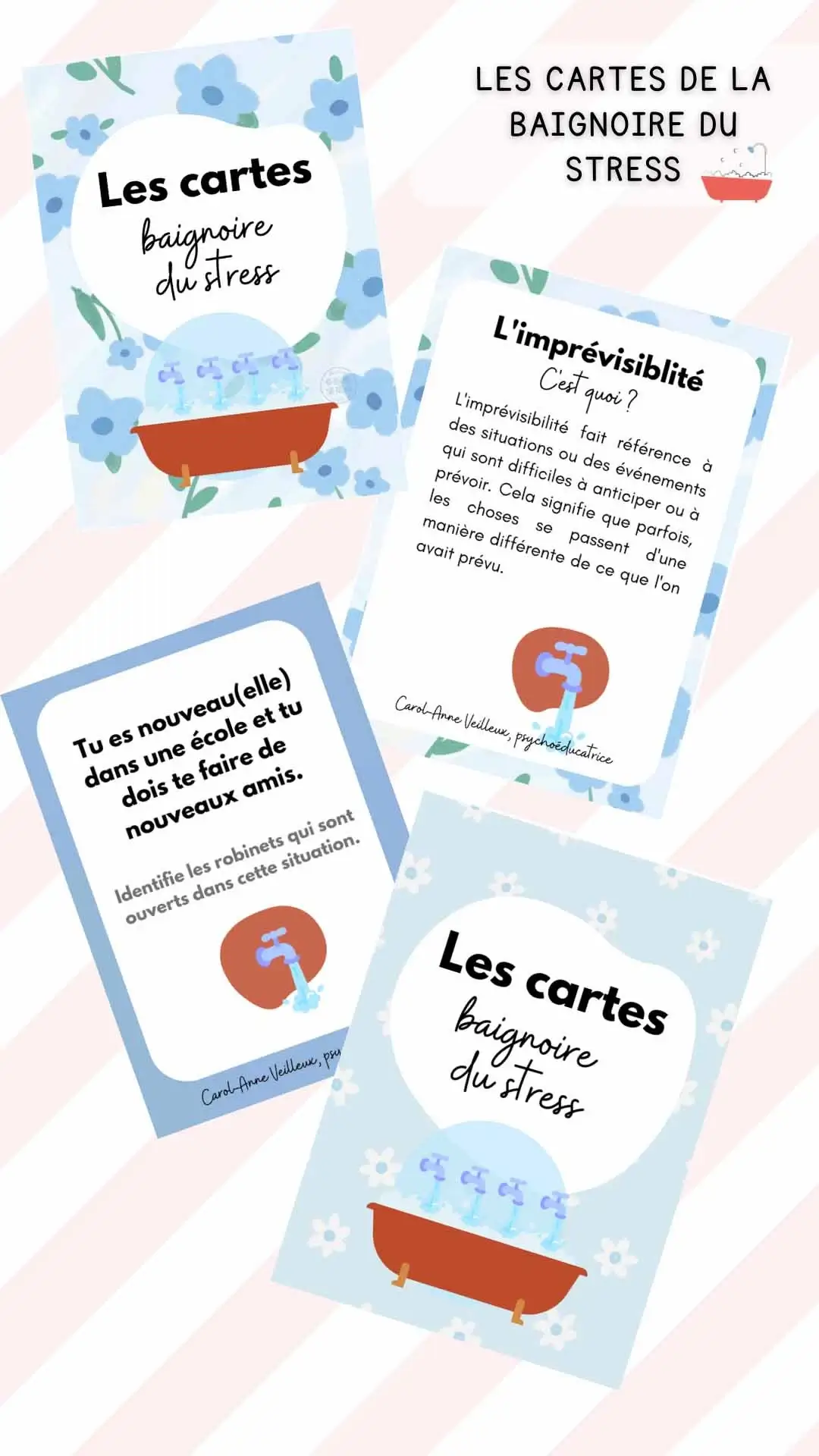 Offrez-vous une immersion complète dans l’univers de la gestion du stress avec La Baignoire du Stress – Coffret Prestige, une trousse psychoéducative incontournable qui combine puissance visuelle, clarté pédagogique et pertinence clinique. Ce coffret rassemble trois outils complémentaires : un ensemble d’affiches éducatives, un jeu de cartes interactif et un guide d’intervention approfondi, tous axés autour de la métaphore accessible et percutante de la baignoire du stress.