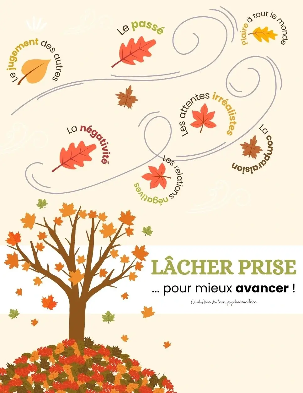 Idéale pour les parents, les intervenants ou les enseignants, cette affiche peut servir de rappel quotidien pour adopter une attitude plus sereine face aux défis de la vie. Ses couleurs apaisantes et ses illustrations saisonnières ajoutent une touche de douceur et d’harmonie à tout espace, tout en renforçant un message positif de lâcher prise.
