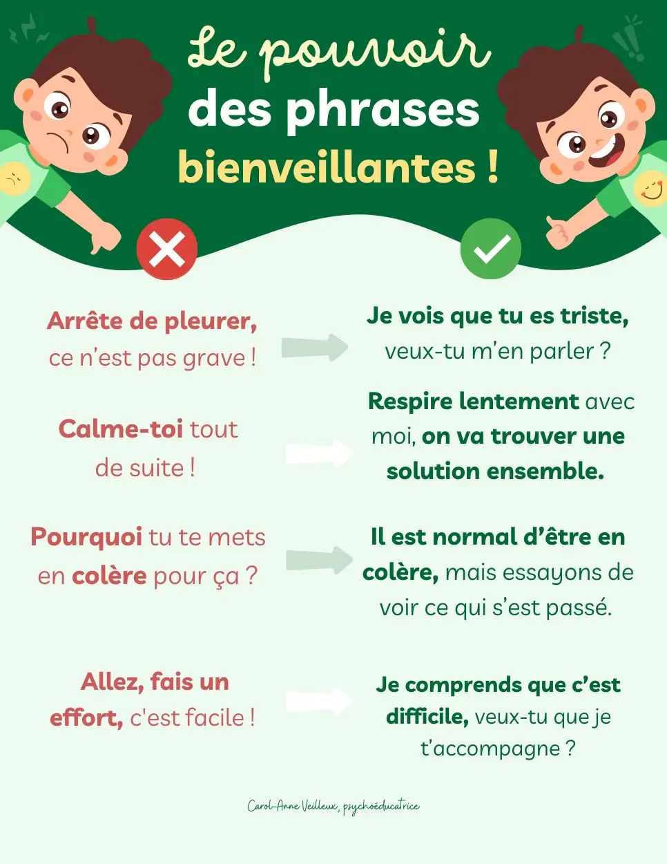 - Des alternatives bienveillantes pour encourager l’expression des émotions.