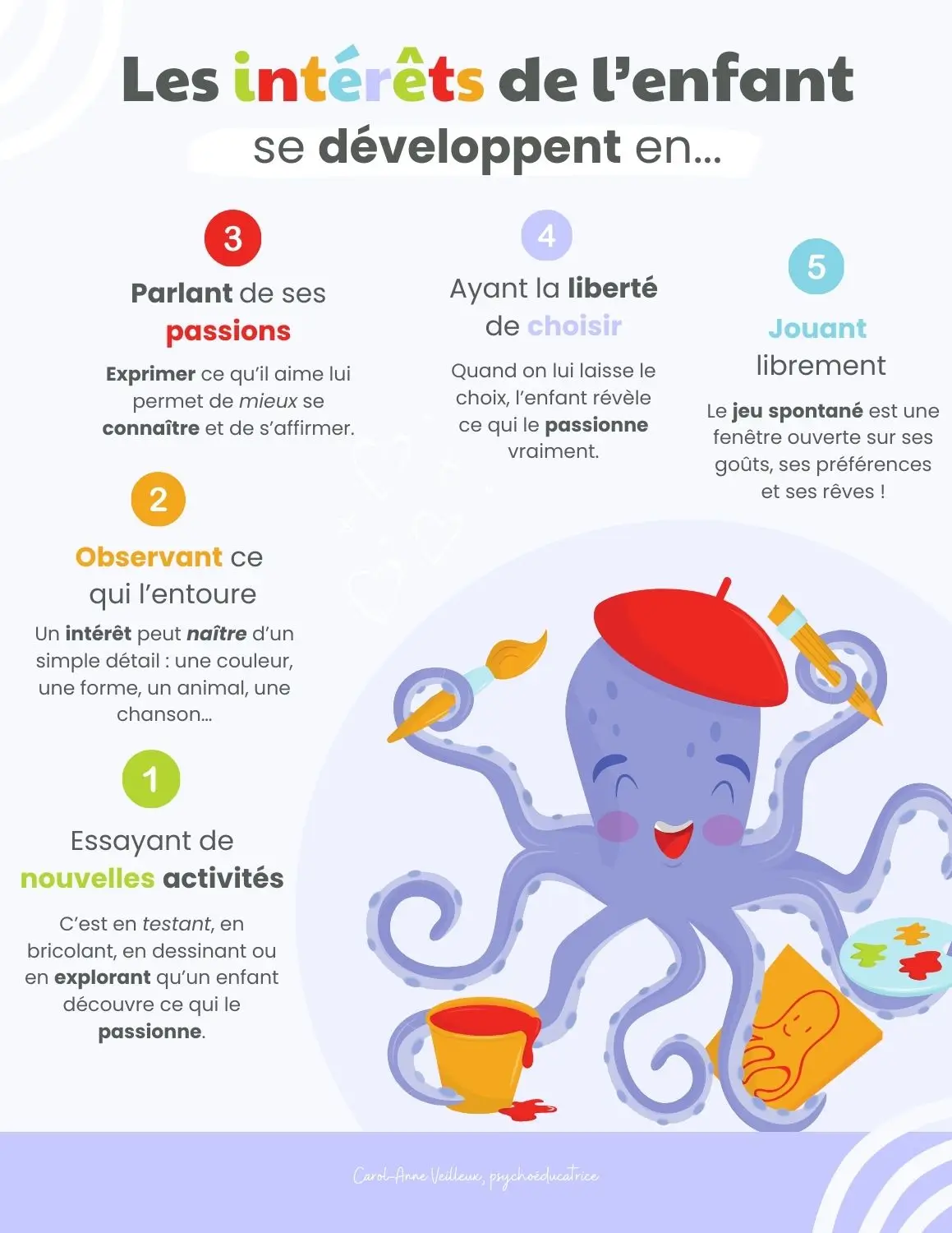 🐙 Affiche éducative – Les intérêts de l’enfant se développent en… 🎨