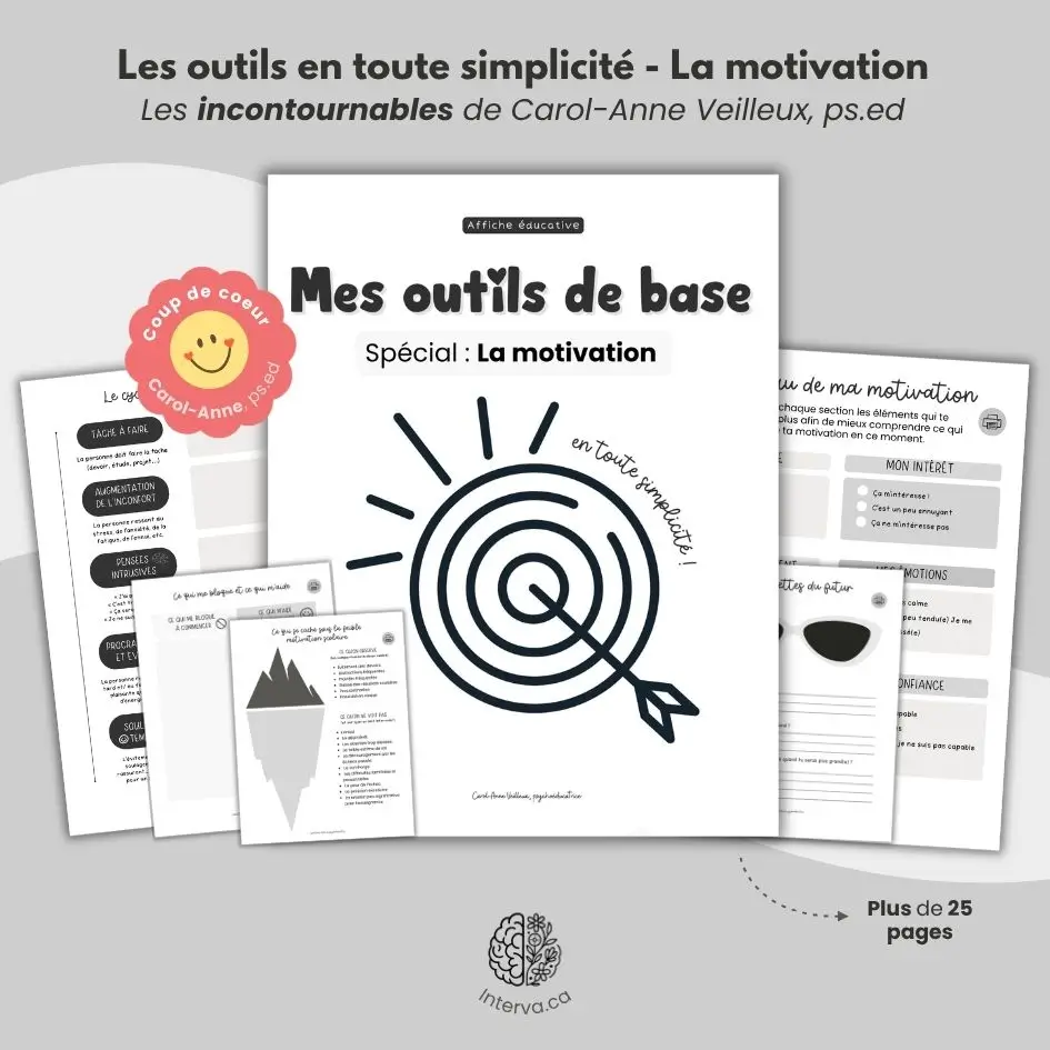 Ce cahier d’intervention complet regroupe une variété d’outils concrets pour mieux comprendre, soutenir et développer la motivation au quotidien. Conçu pour accompagner autant les enfants que les adolescents et les adultes, il propose une approche structurée qui permet d’explorer les différents facteurs qui influencent l’engagement, comme les émotions, l էնergie, les pensées et l’environnement. À travers plus de 25 pages d’outils prêts à être utilisés, ce guide met de l’avant des stratégies simples et efficaces pour favoriser le passage à l’action, diminuer la procrastination et renforcer le sentiment de compétence. On y retrouve notamment des outils pour se fixer des objectifs réalistes, comprendre les blocages, découper les tâches, transformer les pensées et donner du sens aux actions. Ce cahier devient rapidement un allié incontournable pour toute personne souhaitant mieux intervenir face aux défis liés à la motivation.