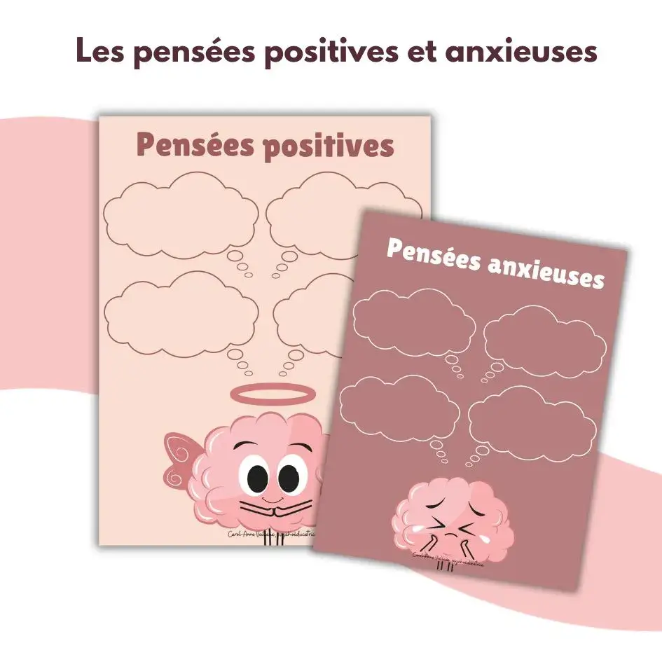 Découvrez nos affiches « Pensées Positives et Pensées Anxieuses » conçue pour aider les enfants à explorer et à comprendre leurs pensées.
