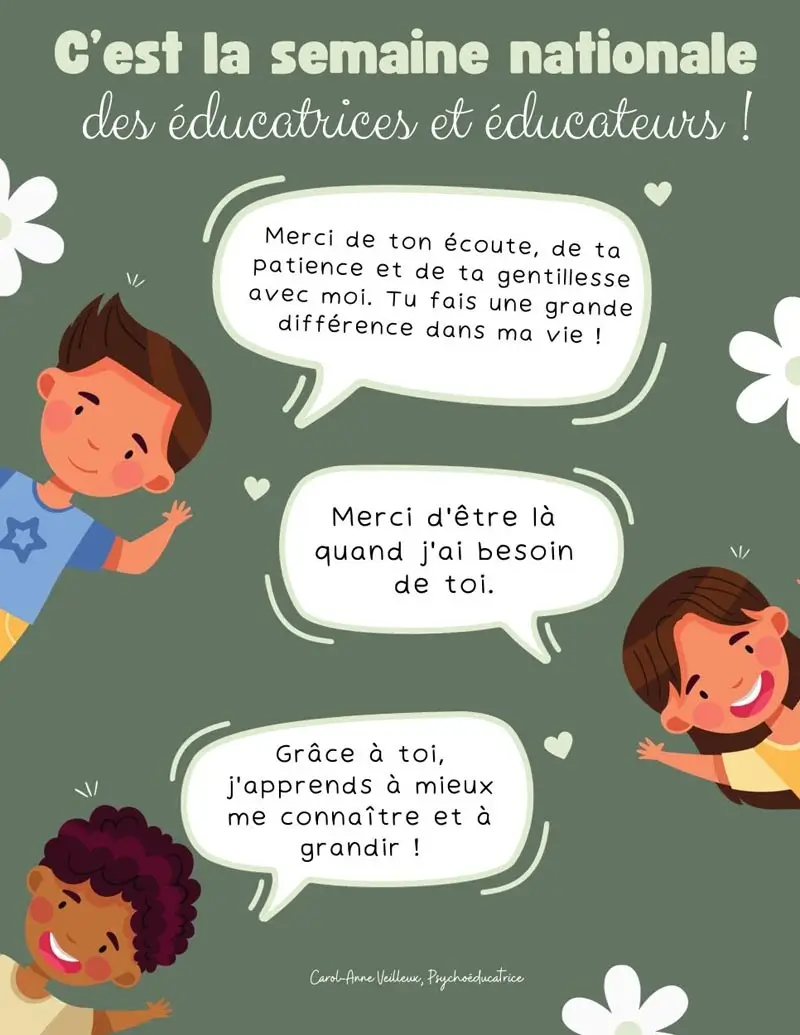 Cette affiche rappelle que c’est la Semaine Nationale des Éducatrices et Éducateurs, une occasion spéciale pour honorer le rôle vital que jouent ces professionnels dans la vie des apprenants. Grâce à eux, les apprenants apprennent à mieux se connaître, à grandir et à s’épanouir.