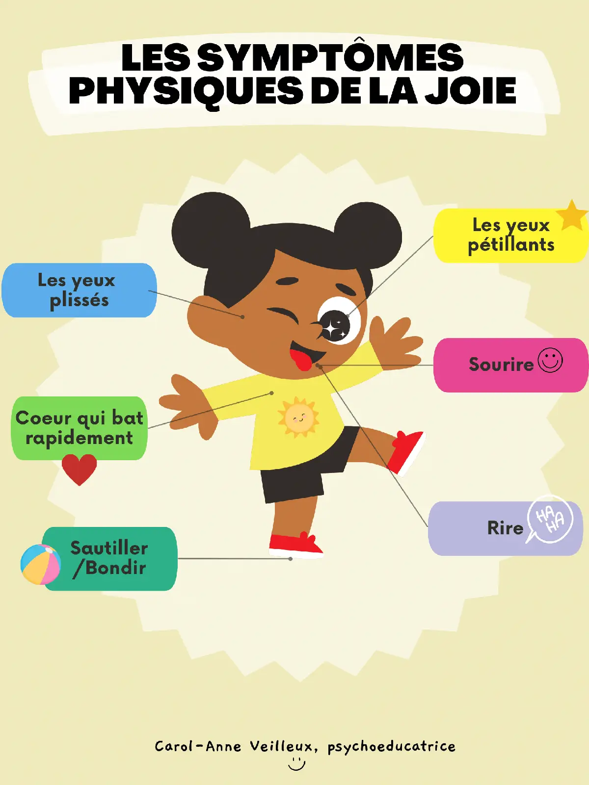 La série d’affiches sur les symptômes physiques de la joie chez les enfants met en lumière les différentes manières dont les enfants peuvent exprimer leur joie.