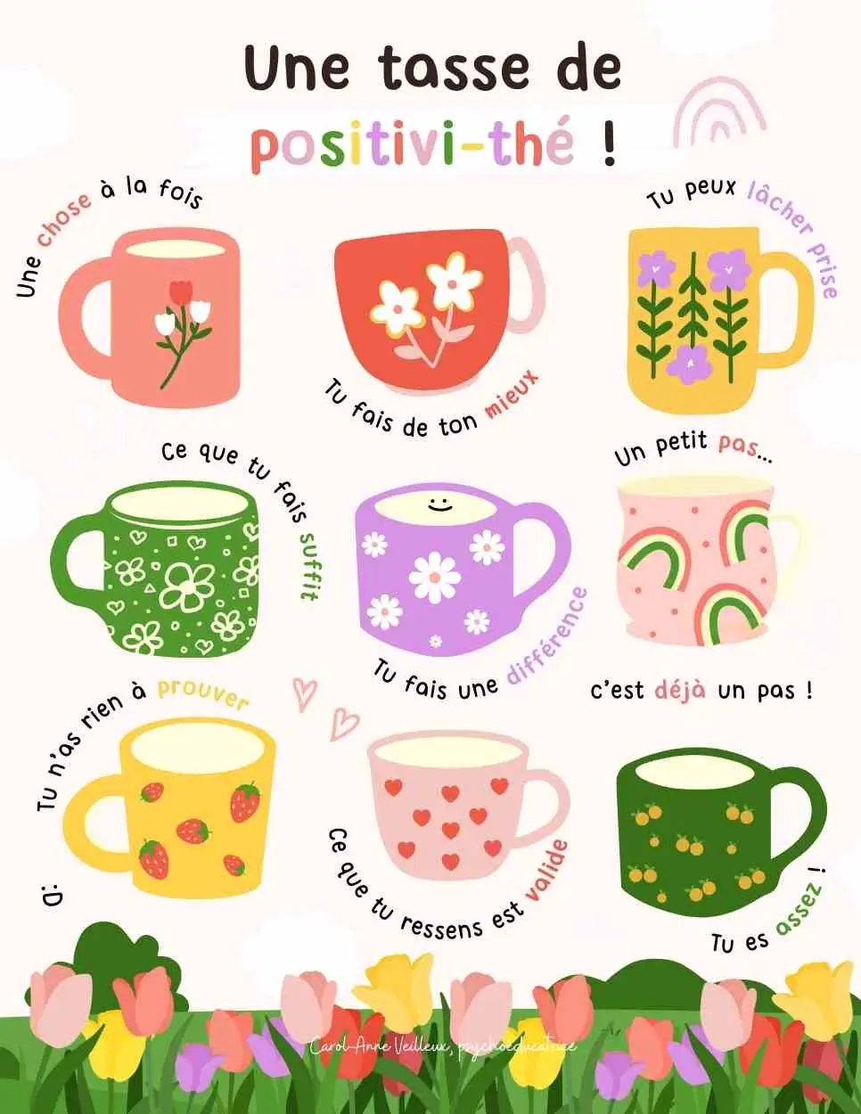 Ajoutez Une tasse de positivi-thé ! à votre panier et faites infuser chaque journée de petites gorgées de bienveillance et d’amour de soi. 🍵🌈